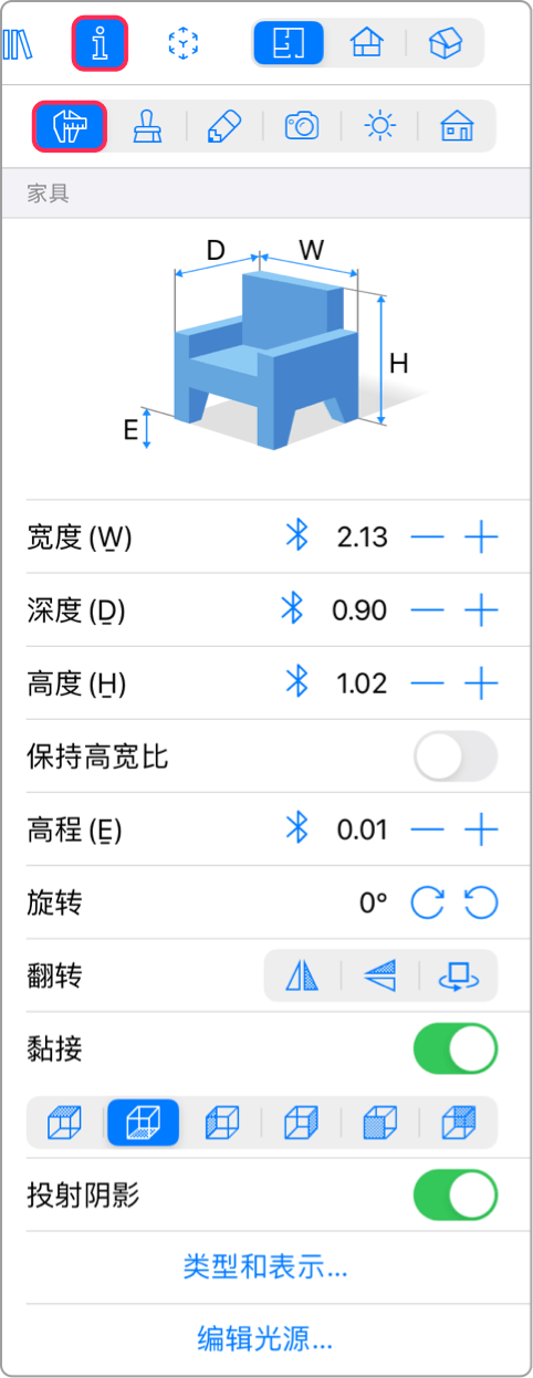 要更改对象尺寸或其他属性,请敲击对象将其选中。然后使用