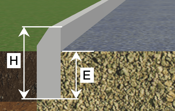 12 – Die Erhöhung eines Bordsteins. Sie wird von der Oberfläche des Weges bis zur Unterkante des Bordsteins gemessen.