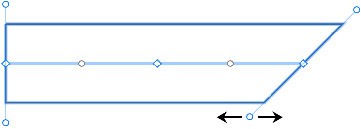 The part of a pathway between two points is called a segment. By default, all segments are straight, but you can make a segment rounded by dragging a circular handle in the middle of the segment.