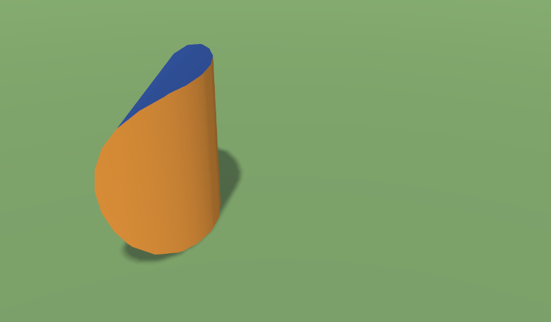 The result also depends on which of the objects was selected first. Previously, the vertical yellow cylinder was selected first. If we select objects in a different order, the result will be as follows.