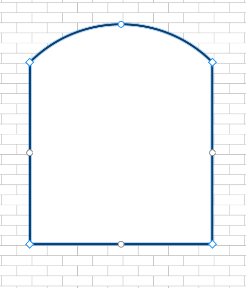 Klicken Sie zum Ändern der Form einer Öffnung mit der rechten Maustaste auf die Öffnung und wählen Sie Umriss bearbeiten im Kontextmenü. Durch das Verschwinden der Ziehpunkte zum Ändern der Größe wird angegeben, dass in den Umrissbearbeitungsmodus gewechselt wurde. Die Kontur der Öffnung wird mit rautenförmigen Ziehpunkten an den Ecken, „Punkte“ genannt, angezeigt. Um die Form der Kontur zu ändern, können Sie die Punkte verschieben.