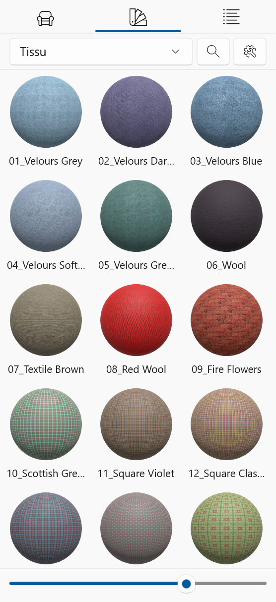Pour rechercher des matériaux, cliquez sur l'icône de loupe et tapez ce que vous recherchez.