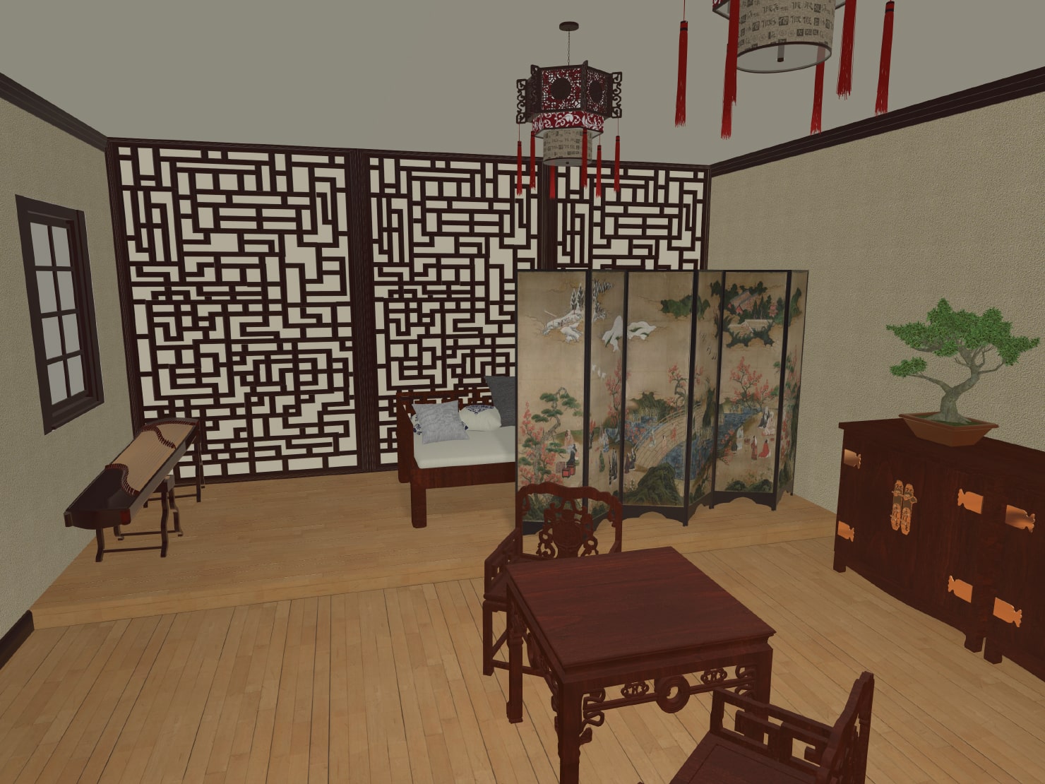 The traditional Chinese interior can be considered as the founder of the space-zoning concept in interior design. The large space of an elongated room was subdivided into sections with the help of lightweight curtains or room dividers, some of which were of a heavy carved type, and others were lightweight paper-based and painted. The dividers could also be folding or stationary.
